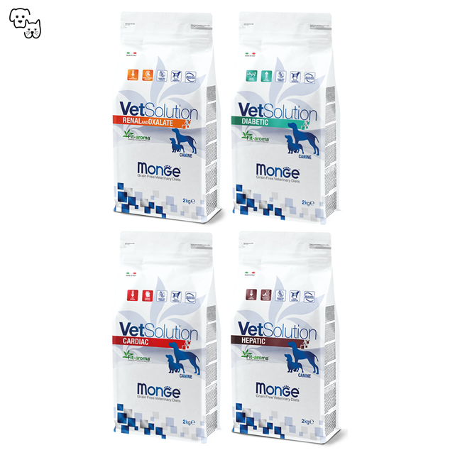 Monge VetSolution Gastrointestinal Canine Adult is a complete dietetic feed for dogs formulated for the reduction of intestinal absorptive disorders. Contains melon juice concetrate to neutralize free radicals, Horse chestnut for intestinal support, Xylo-oligosaccharides (XOS) to secure the intestinal microbiota. Highly digestible feed with increased sodium and potassium.
